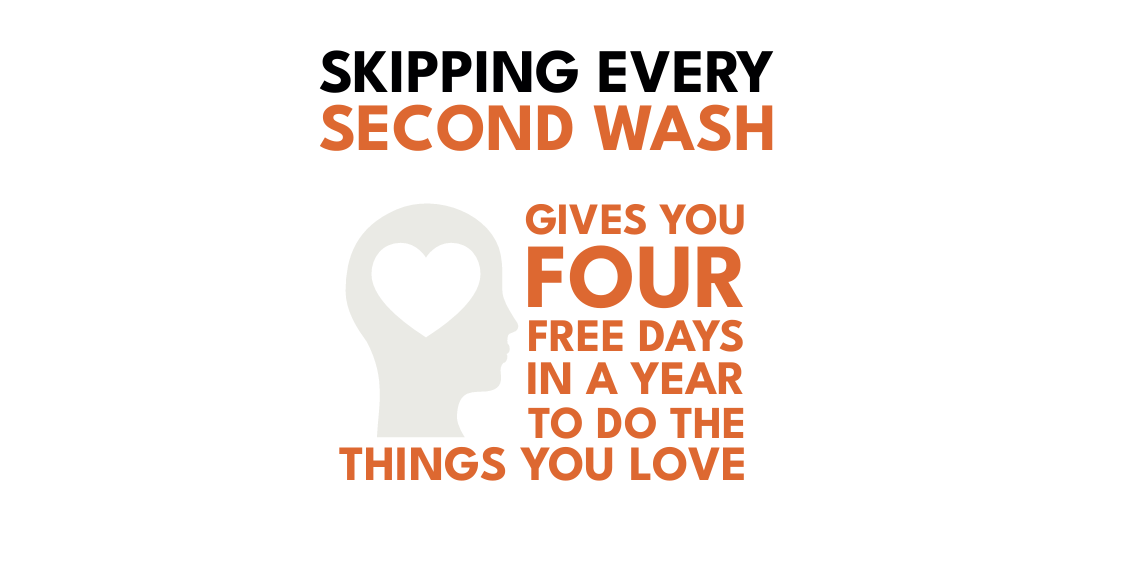 For instance, just skipping one out of ten washes shows a reduction in total toxicity and large improvements on CO2, microplastics and water use.